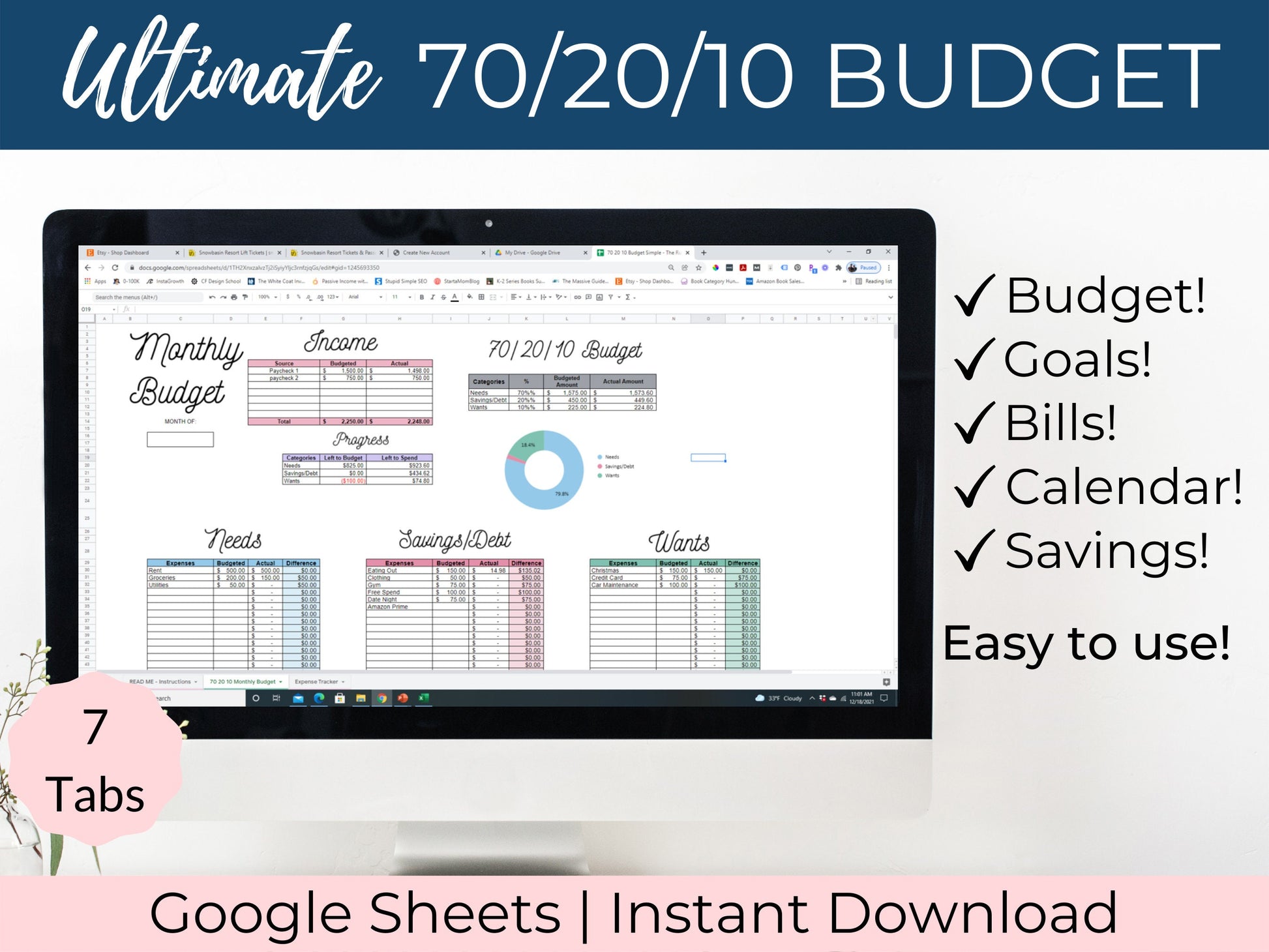 This monthly budget for google sheets has been created to help you create your budget using the 70/20/10 rule and track your actual expenses throughout the month. Now you can easily plan your budget AND keep track of your finances to stay in budget.