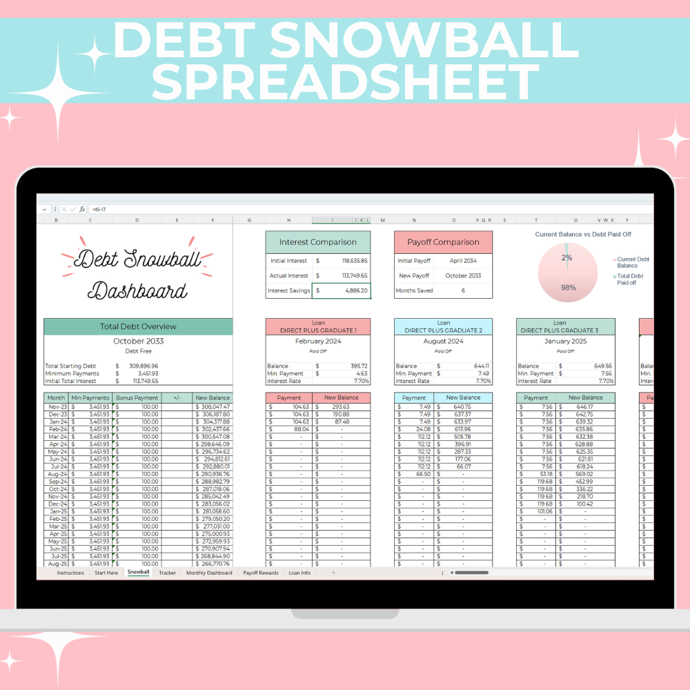 No more wondering which debt to payoff, or how much to send to any particular debt. This spreadsheet lays it all out for you in an easy to see and manage format!
